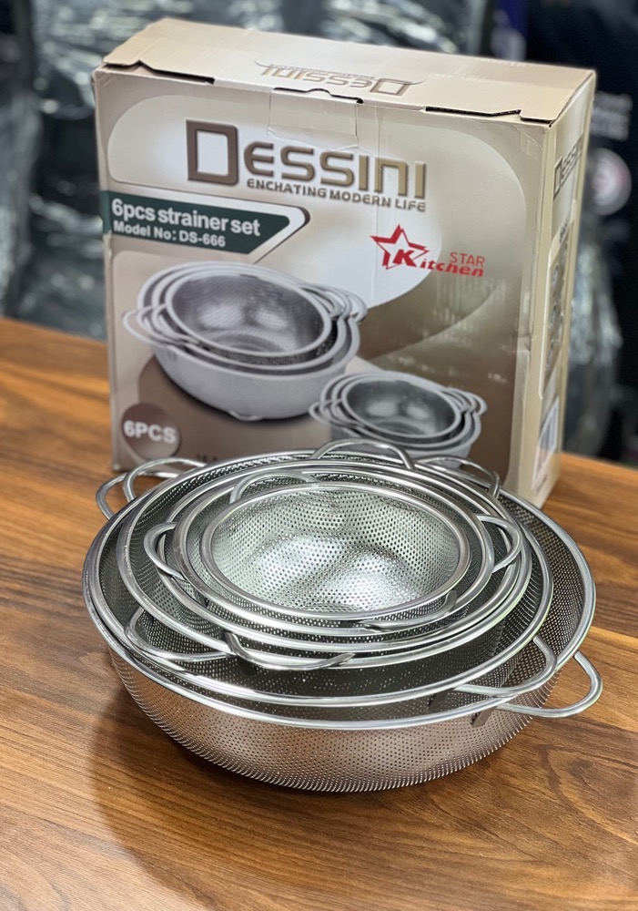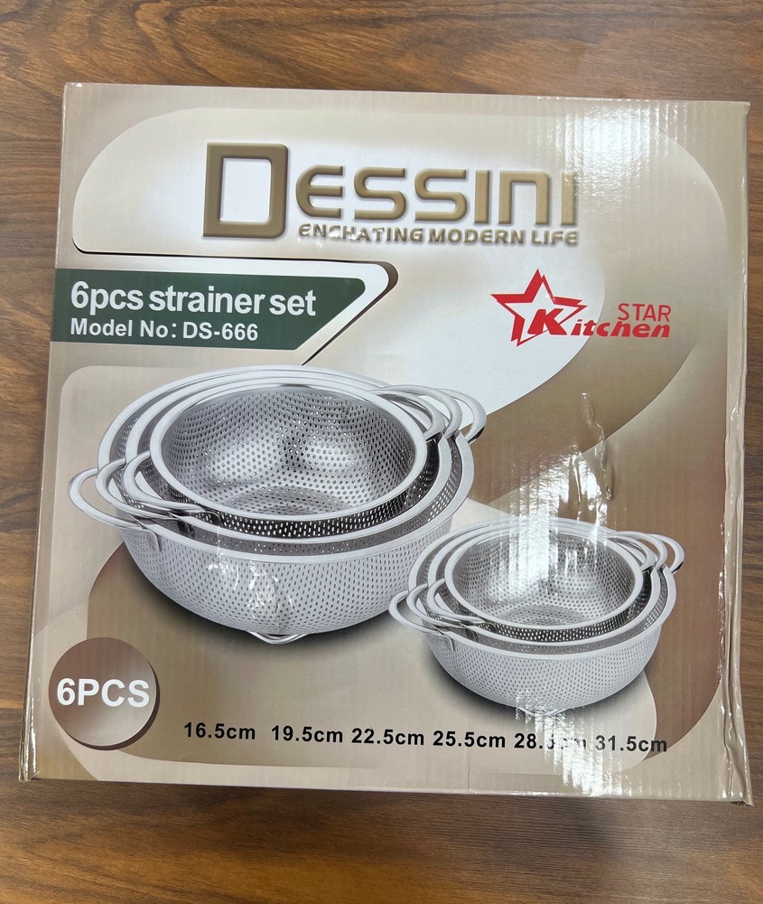 سرویس 6 پارچه ای آبکش دسته دار ضد زنگ مدل:DS_666 کیفیت عالی ۶ پارچه استیل ضد زنگ دسته دار پایه دار سایز ۱۶.۵ ۱۹.۵ ۲۲.۵ ۲۵.۵ ۲۸.۵ ۳۱.۵