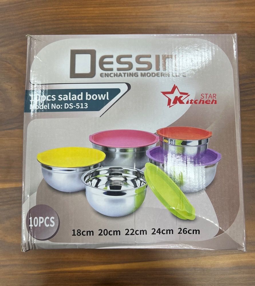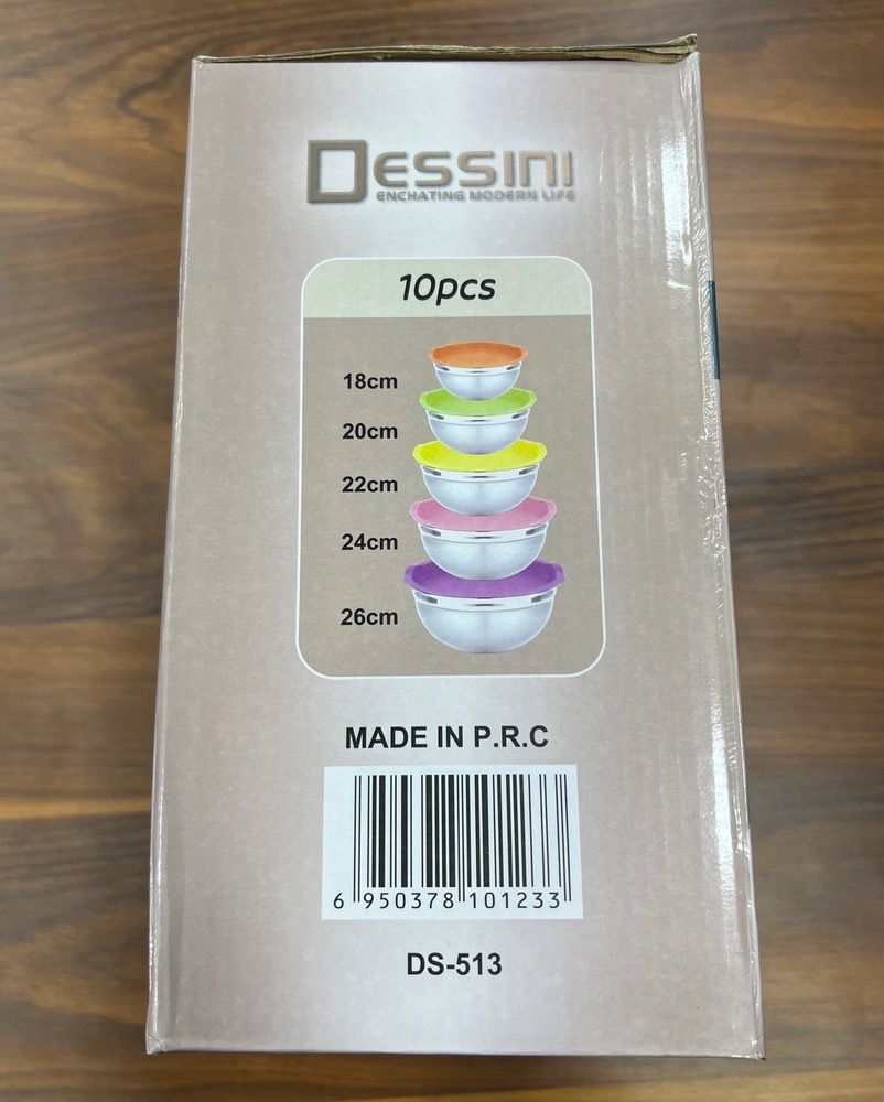 سرویس لگن 5 پارچه استیل دسینی مدل:DS_513 رنگ درب ها: نارنجی.سبز.آبی.زرد.قرمز سایز بندی: 26_24_22_20_18 جنس استیل نگیر کیفیت عالی